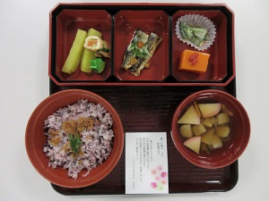 長期入院の方に季節の移り変わりを感じて頂けるよう、毎月1日には御一日献立を、また、季節ごとに行事食を提供しています。