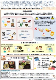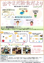 毎月1日に、栄養の話題や当院の給食をご紹介する「おやまだ給食だより」を発行しています。