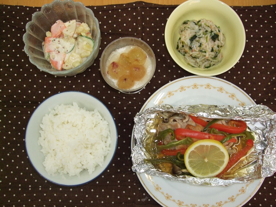 | 秋の天ぷら(甘鯛・椎茸の海老しんじょ、かき揚げ、舞茸、さつま芋) | |